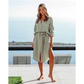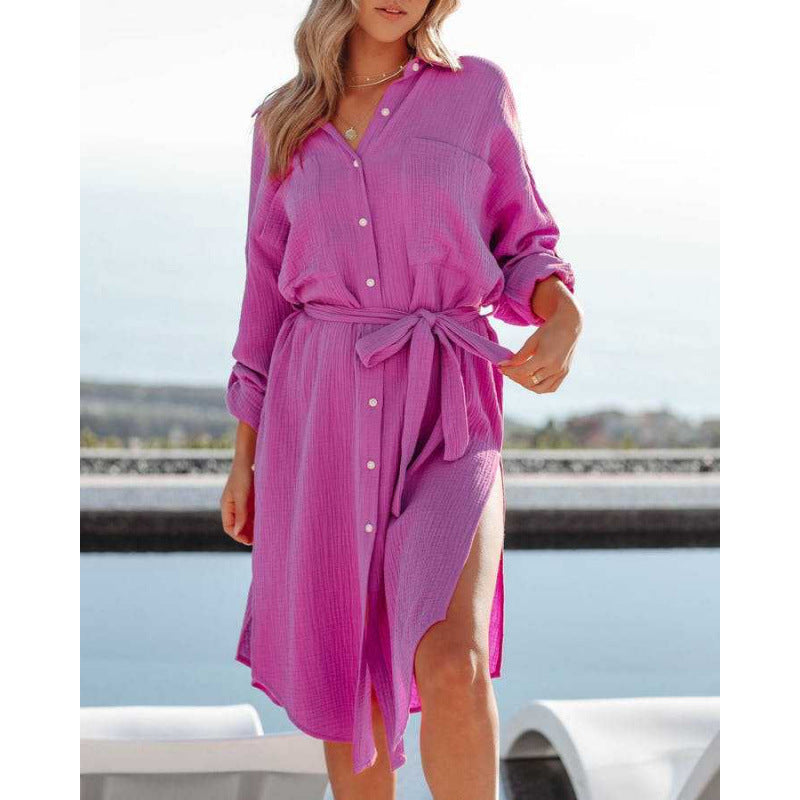 Erleben Sie Eleganz und Komfort mit dem Femme Button-Down Hemdkleid. Ein unentbehrliches Teil Ihrer Sommerkollektion!