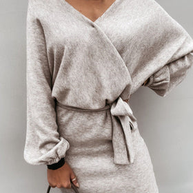 Wickelkleid für Damen mit langen Ärmeln und Bindegürtel von berg-feldt