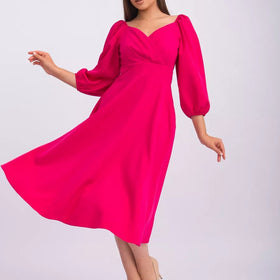 Dieses atemberaubende Wickelkleid ist perfekt für besondere Anlässe. Es hat einen schmeichelhaften V-Ausschnitt und voluminöse Ärmel.