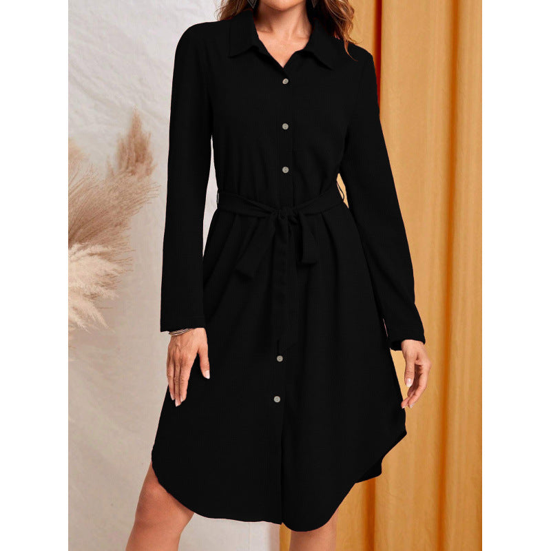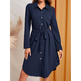 Erhöhen Sie Ihre Garderobe mit diesem wunderschön gestalteten Femme Button-Down Hemdkleid mit Taillengürtel. Perfekt für sowohl lässige Ausflüge als auch elegante Veranstaltungen kombiniert dieses Kleid Funktionalität mit Stil.
