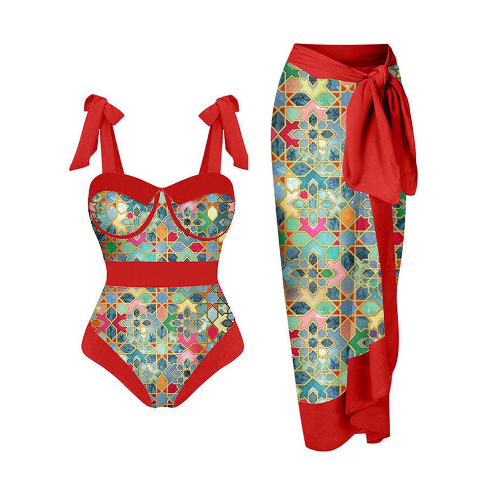 Bereichern Sie Ihre Badesaison mit unserem Femme Floral Print Badeanzug und passendem Wickelrock. Dieser hochwertige Einteiler mit leuchtenden Blumenmustern und verstellbaren Bindebändern bietet ideale Passform und Stil. Der herzförmige Ausschnitt ist schmeichelhaft; kontrastierende Farbtöne setzen Akzente.