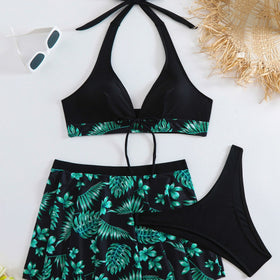 Eleganz und Bequemlichkeit vereint: Damen Triangular Halter Neck Bikini Set mit Wickelrock. Trendig für Strand und Pool, garantiert selbstbewusstes Auftreten.