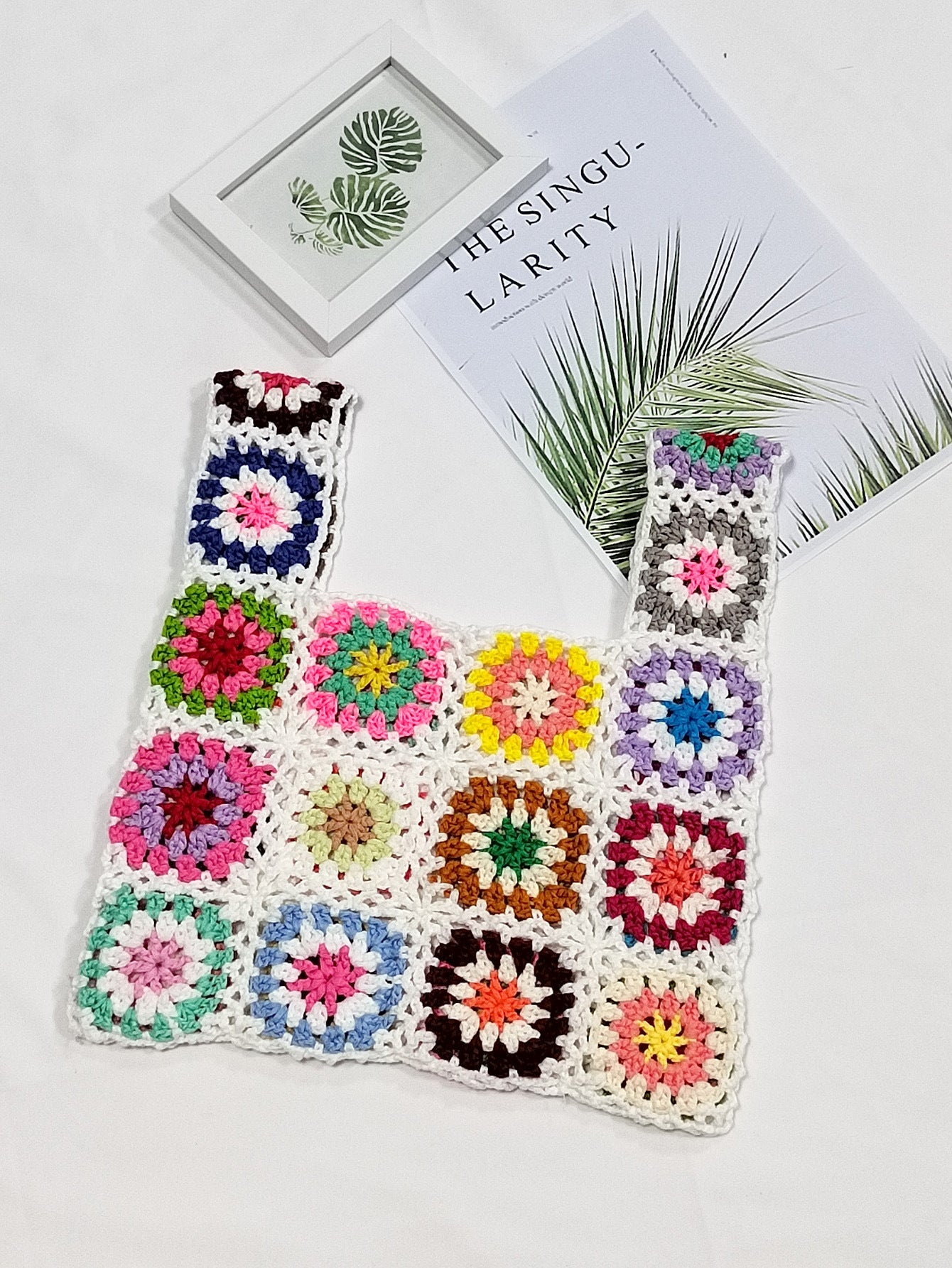 Entdecken Sie die perfekte Mischung aus Mode und Nachhaltigkeit mit unserer gehäkelten Granny Square Tote Bag. Dieses einzigartige Accessoire ist auffällig und erfüllt Ihre täglichen Bedürfnisse, während es Ihren Stil präsentiert.