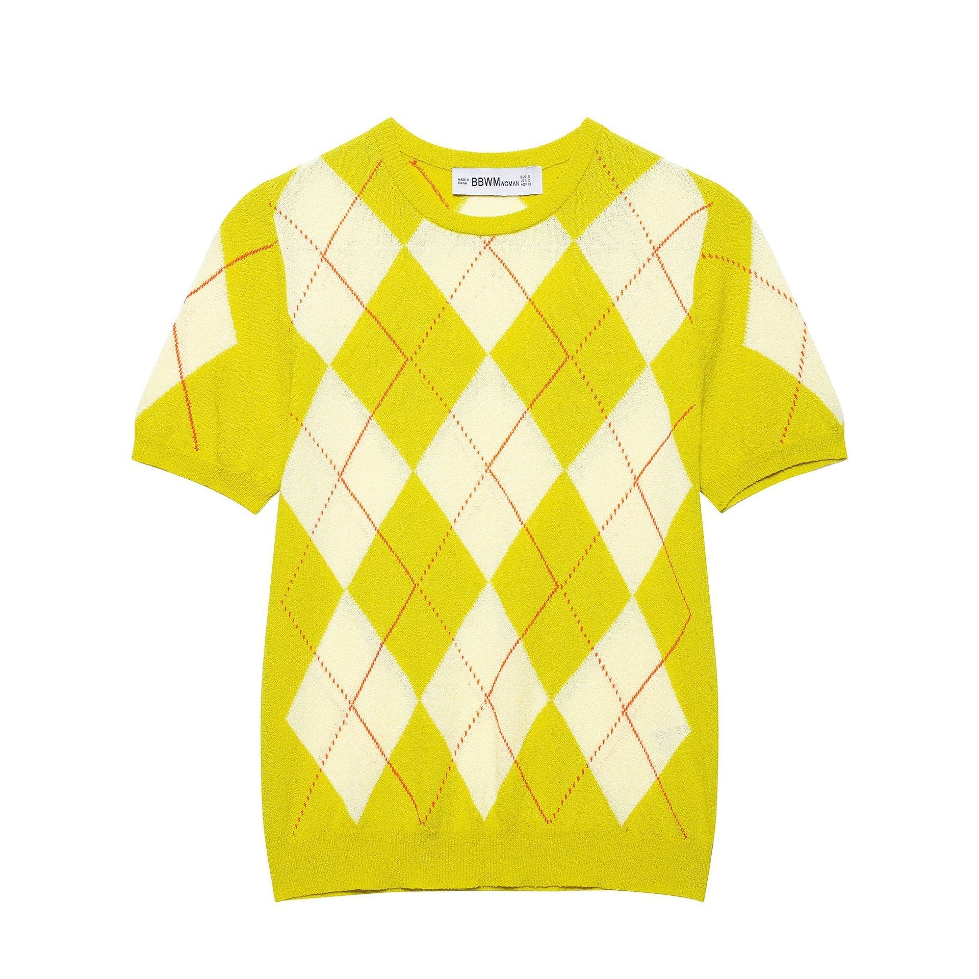 Verleihen Sie Ihrer Garderobe mit unserem atemberaubenden Argyle-Muster Kurzarmpullover eine neue Dimension. Hergestellt aus weicher, atmungsaktiver, hochwertiger Mischung.