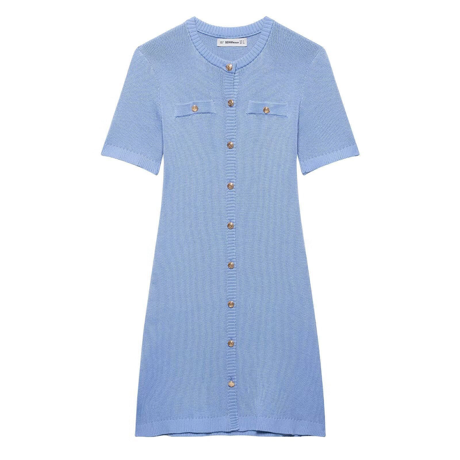 - Stoff: Weiches, atmungsaktives Strickmaterial für ganztägigen Komfort. - Design: Schmeichelhafte Silhouette mit kurzen Ärmeln und knielangem Schnitt. - Details: Zwei funktionale Brusttaschen und stilvolle Knopfakzenten. - Vielseitigkeit: Kombinierbar mit High Heels oder Ballerinas. - Pflege: Maschinenwäsche.Ein anspruchsvolles, bequemes Button-Up Strickkleid für modebewusste Personen.