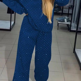 Entdecken Sie unser Femme Cozy Polka Dot Lounge Set: Pullover und Jogginghose für ultimativen Komfort und Style. Trendiges Punktemuster trifft weichen, atmungsaktiven Stoff.