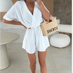 - Weicher und atmungsaktiver Stoff: Ganztägiger Komfort. - Elegantes Wickeldesign: Schmeichelhafte Silhouette, lockere Passform. - Vielseitige Styling-Möglichkeiten: Für Strand oder Abend. - Klassische Farbe: Zeitloser weißer Farbton. - Einfach zu pflegen: Maschinenwaschbar.