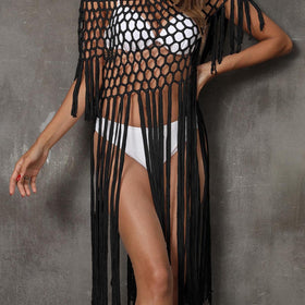 Entdecken Sie die perfekte Kombination aus Stil und Funktionalität mit unserem Fransen-gehäkelten Strandüberwurf. Entworfen für die moderne Frau, fällt dieser Überwurf wunderschön und verleiht Ihrem Strandensemble eine mühelose Note.