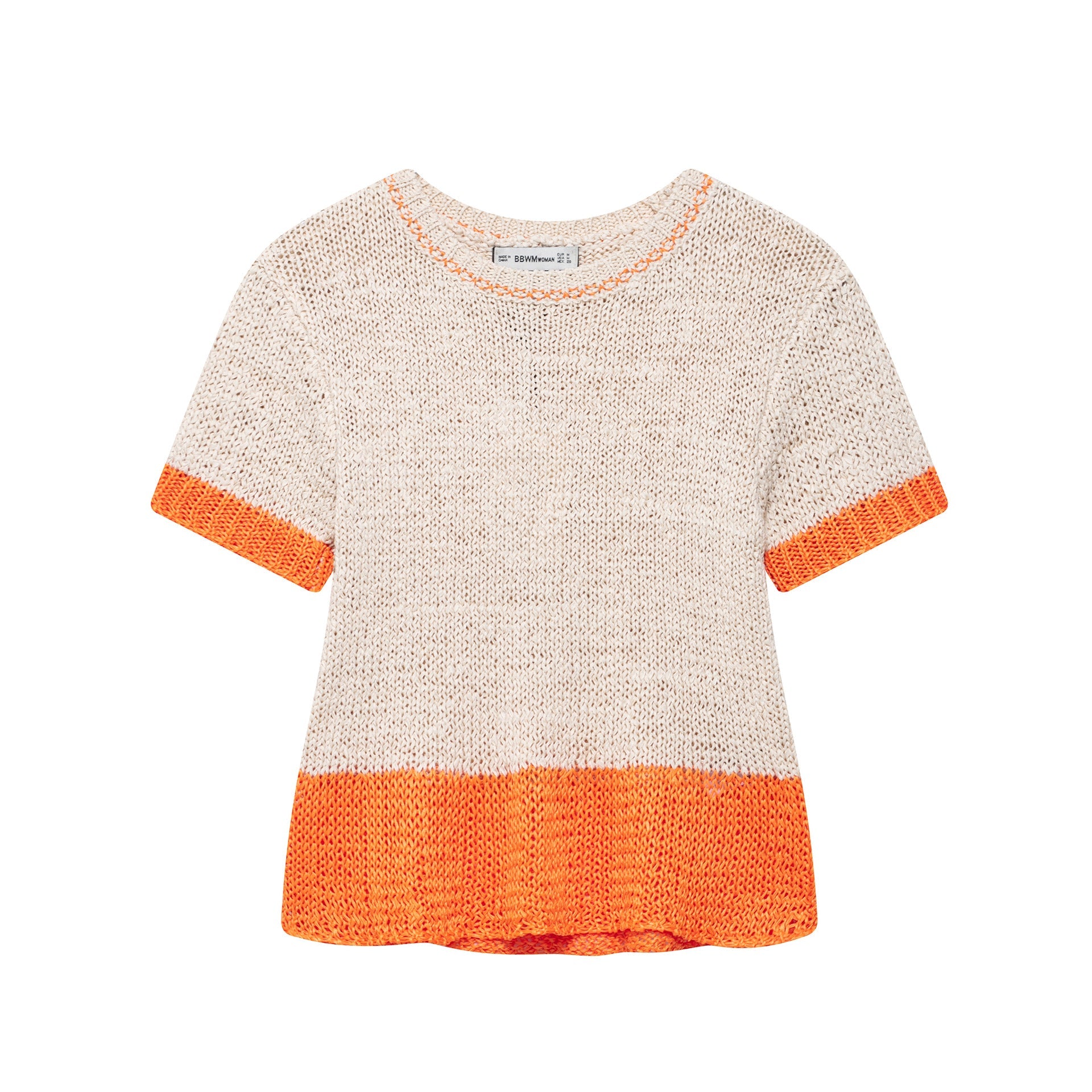 - Material: Leichtes, atmungsaktives Baumwollmix für ganztägigen Komfort. - Design: Dekoratives Strickmuster mit schickem Farbblockmuster und orangen Akzenten an Saum und Ärmeln. - Stil: Lockere Passform, perfekt für legere Ausflüge oder zum Layering. - Vielseitigkeit: Ideal zu Jeans, Shorts oder Röcken, von Tag zu Nacht tragbar. - Pflegehinweise: Waschmaschinenfest, form- und farbstabil.Erleben Sie die perfekte Mischung aus Mode und Komfort mit unserem Femme Decorative Knit Top berg-feldt, für moderne Frauen, die Stil und Funktionalität schätzen.