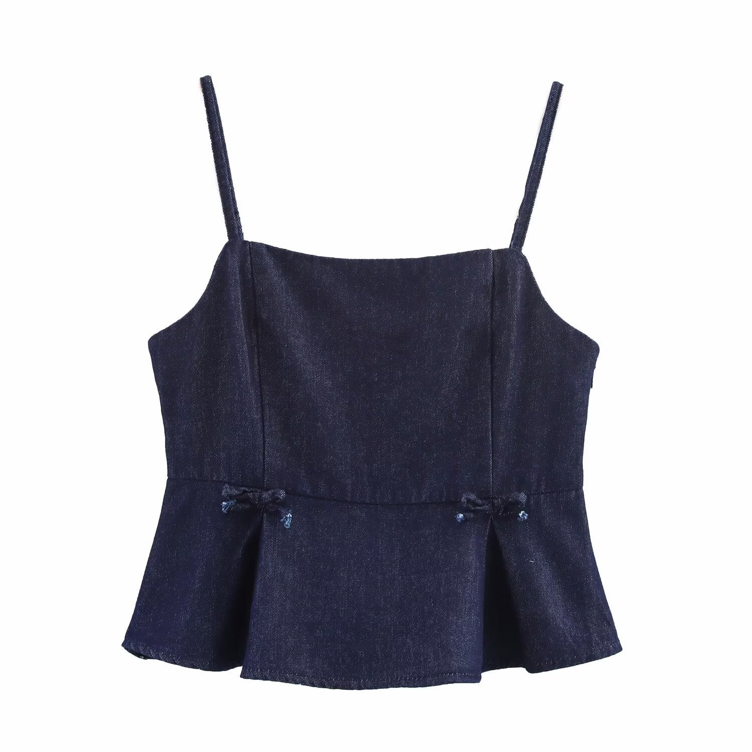 Chic Strappy Denim Peplum Top