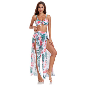 Sonniges Design und Bequemlichkeit vereint: unser stylischer Floral Print Bikini und transparentes Maxi Cover-Up Set. Eine perfekte Harmonie aus Mode und Funktion – unverzichtbar für Ihre Sommergarderobe.
