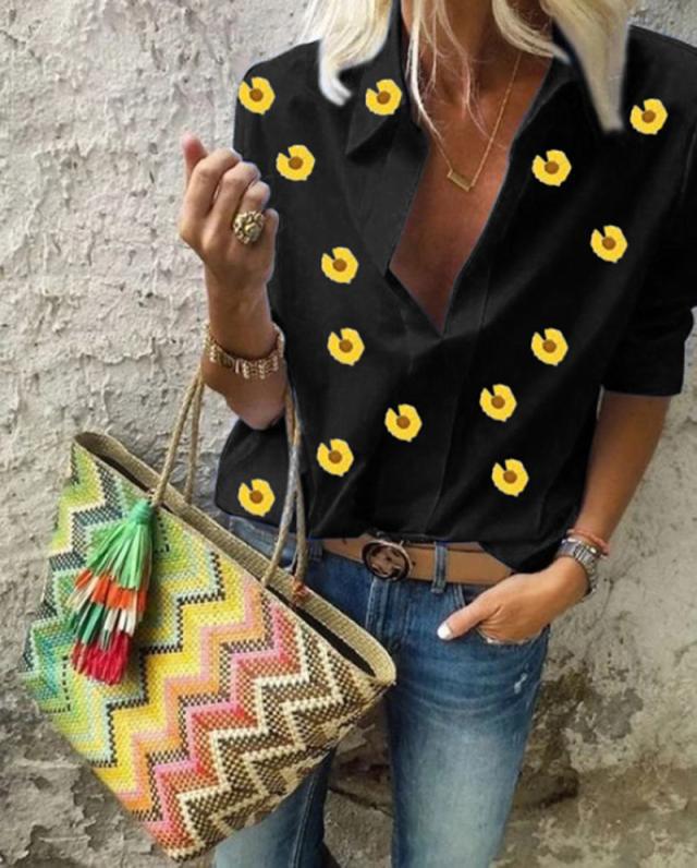 Women's Floral Embroidered Button-Up Shirt by berg-feldt