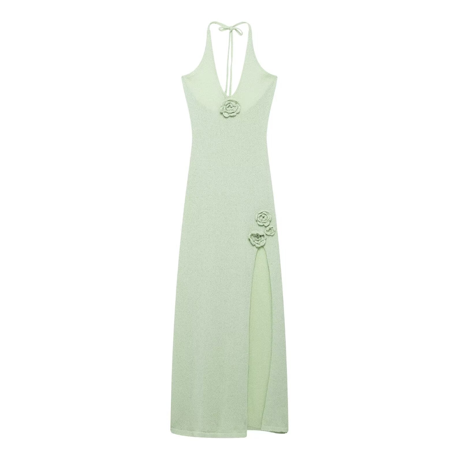 Umarmen Sie die Eleganz mit unserem atemberaubenden Maxikleid mit Halterhals und floralem Schmuck. Dieses schicke Kleid zeichnet sich durch eine sanft fließende Silhouette aus, die aus weichem, leichtem Material gefertigt ist und Komfort sowie Atmungsaktivität gewährleistet. Die auffälligen floralen Verzierungen verleihen ihm einen Hauch von Raffinesse und machen es perfekt für sowohl legere Ausflüge als auch besondere Anlässe.
