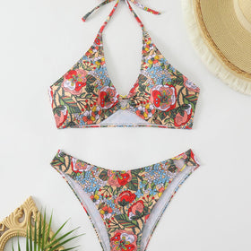 Genießen Sie die Sonne mit unserem eleganten Femme Floral Print Halter Bikini Set. Dieses zweiteilige Set besteht aus einem Haltertop mit verstellbaren Trägern für optimalen Komfort.