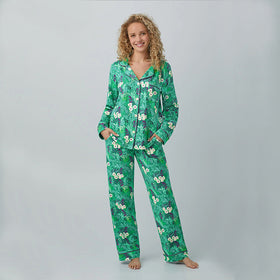 Luxuriöses Pyjama-Set mit Blumenmuster für maximalen Komfort und Stil. Langärmliges Hemd mit Knöpfen und passende, lässig geschnittene Hose.