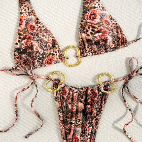 Entdecken Sie das Damen Push-Up-Bikini-Set berg-feldt mit floralem Design – elegant und bequem für Strand und Pool. Das auffällige Blumenmuster kombiniert Rosen und Leopardenmuster.
