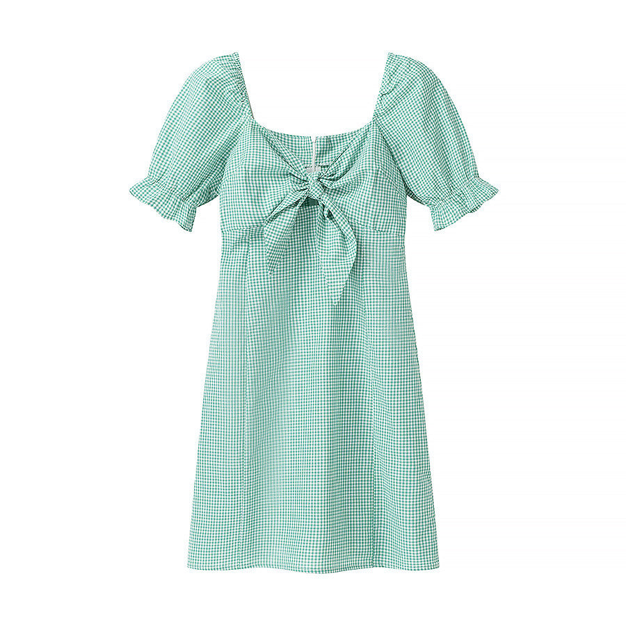Stylisches und Schickes Gingham Mini-Kleid mit Bindefront