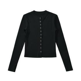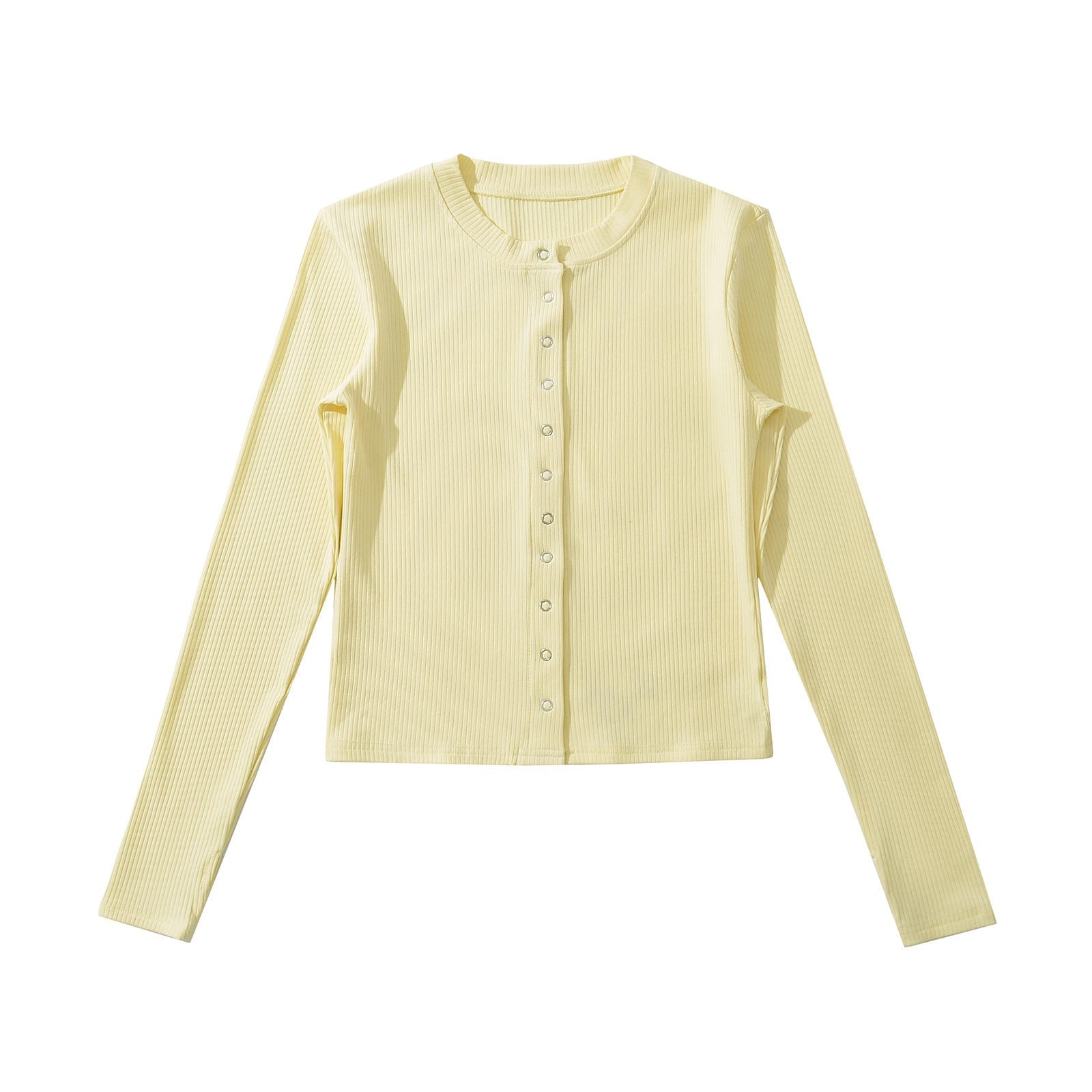Heben Sie Ihre Garderobe mit unserem Langarm-Button-Up-Ripp-Top hervor