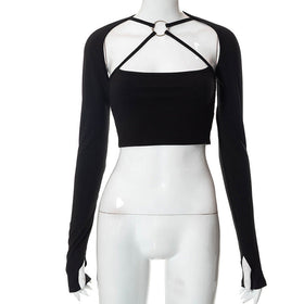 Erheben Sie Ihre Garderobe mit unserem schicken Langarm-Cut-Out-Crop-Top