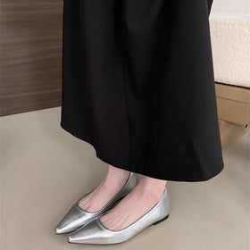 Stilvolle und raffinierte metallische Ballerinas mit spitzem Zehenbereich