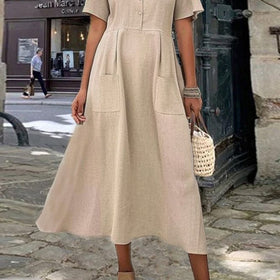 Bereichern Sie Ihre Garderobe mit unserem Midi-Kleid mit Knöpfen und Taschen