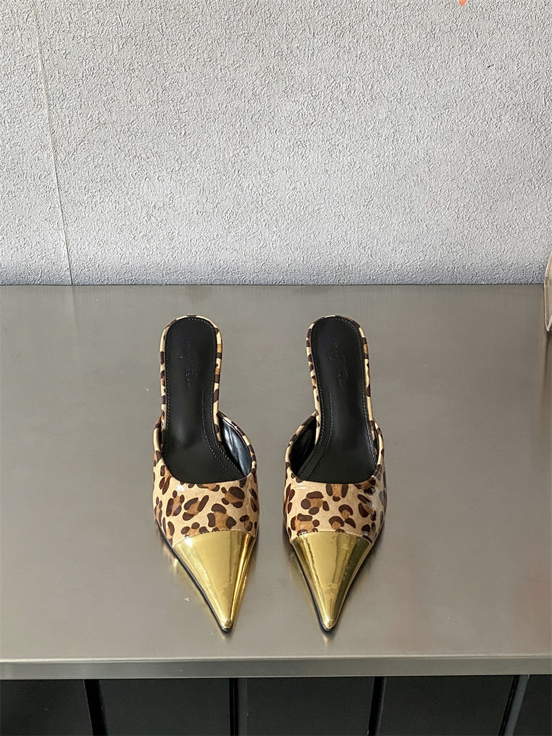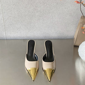Stylische Spitzenzehen-Metallische Absatz-Slideschuhe