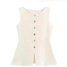 Erheben Sie Ihre Garderobe mit unserem stilvollen gerippten Knopf-Oben-Trägershirt