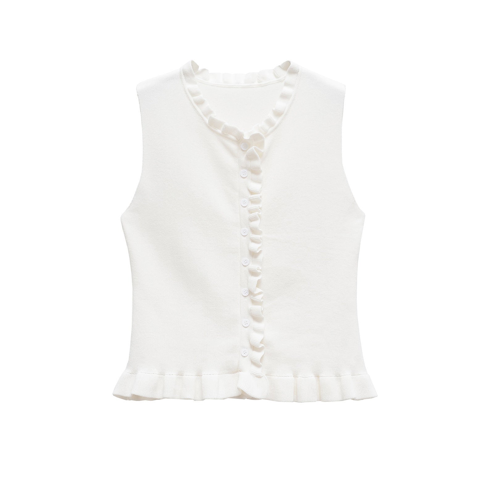 Stylisches Rüschengestricktes Ärmelloses Oberteil