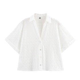 Women's Short-Sleeve Eyelet Button-Up Blouse berg-feldt