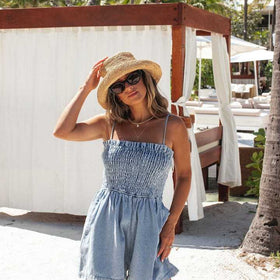 Erhöhen Sie Ihren Sommerstil mit unserem geschoppten Denim-Romper