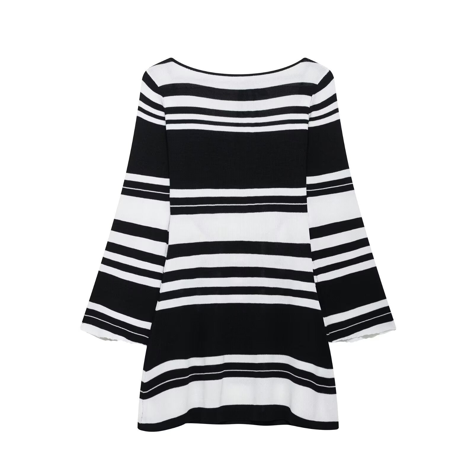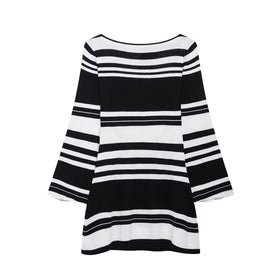 Ergänzen Sie Ihre Garderobe mit unserem Femme Bell Sleeve Striped Tunic Dress – Stil und Komfort vereint. Dieses Tunika-Kleid besticht durch ein auffälliges Streifenmuster, modern und vielseitig für legere oder semi-formelle Anlässe.