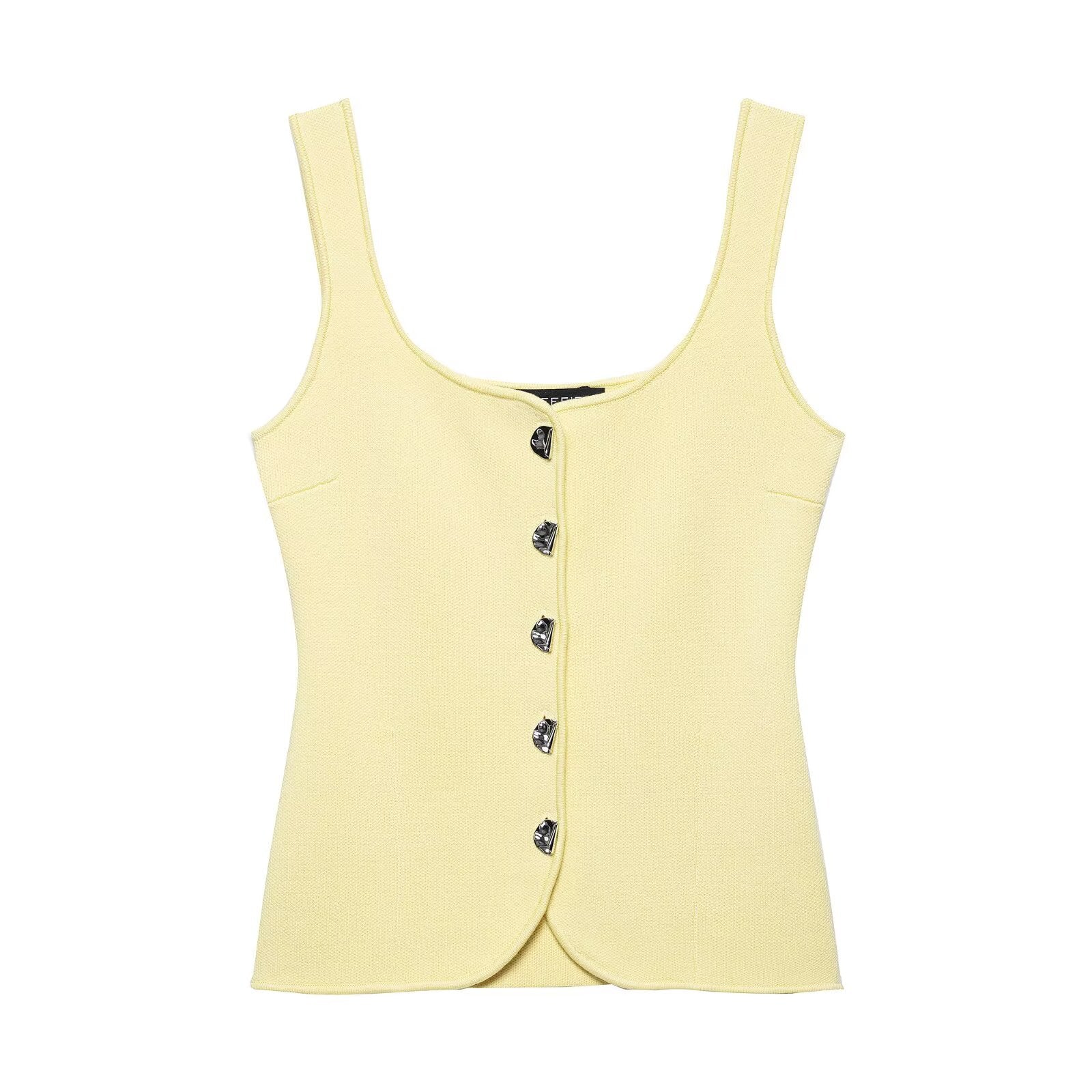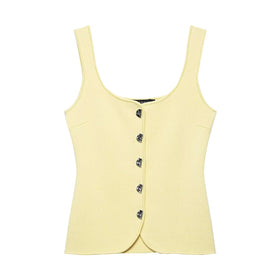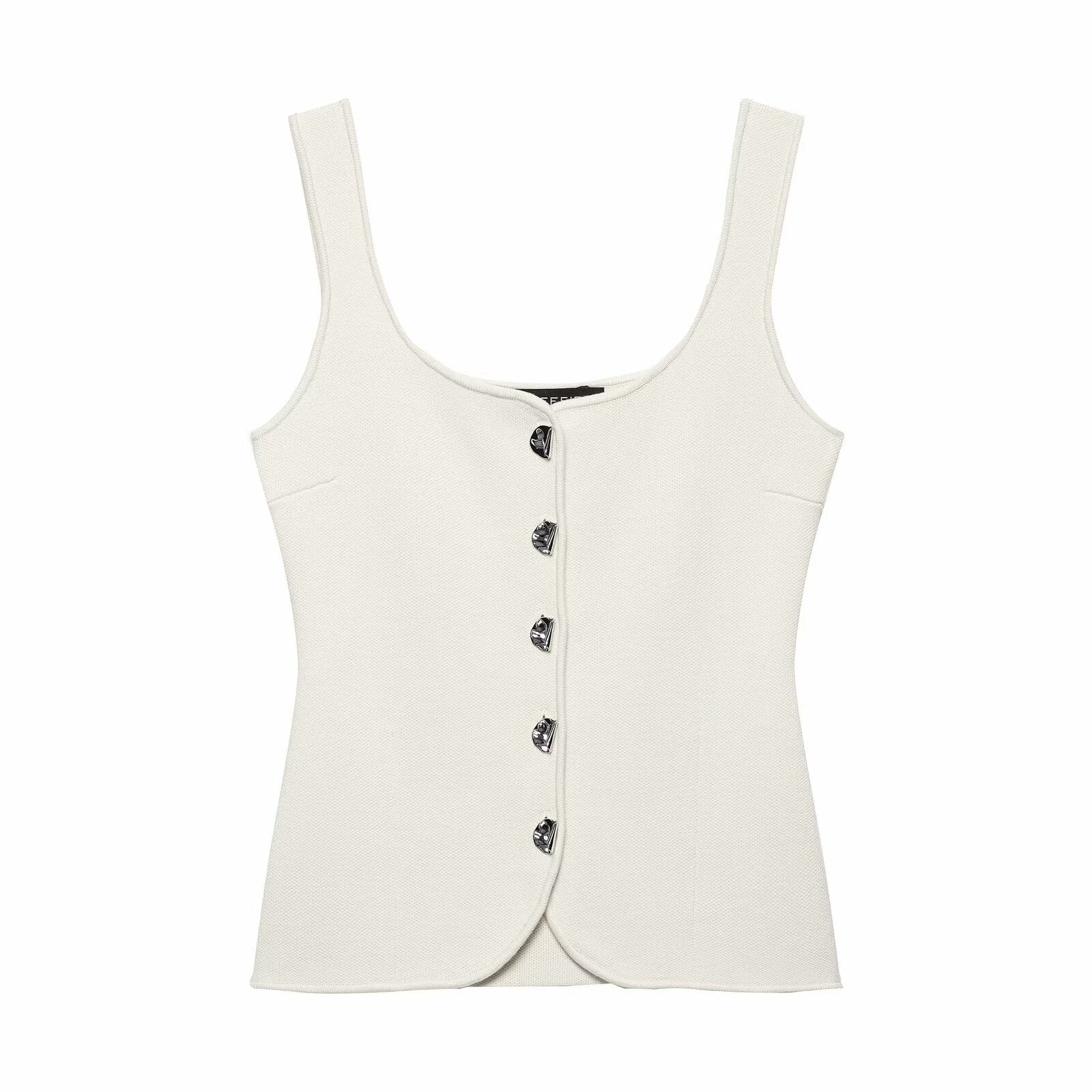 Erheben Sie Ihre Garderobe mit unserem Femme Tailored Button-Up Knit Top, das über einen einzigartigen dekorativen Knopfverschluss für einen stilvollen Akzent verfügt. Dieses Top ist für moderne Frauen entworfen, die sowohl Raffinesse als auch Komfort schätzen.