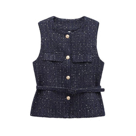 Diese schicke Femme strukturierte Utility-Weste vereint Mode und Praktikabilität. Perfekt zum Schichten, ihr strukturierter Stoff verleiht jedem Outfit Tiefe.