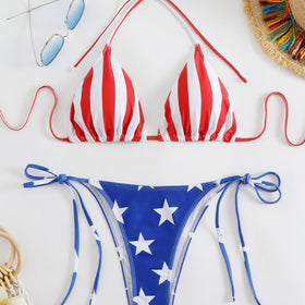Women's Triangle Halter Bikini Set with Stars and Stripes Pattern by berg-feldt