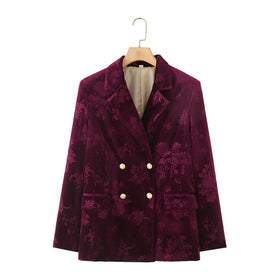 Ein eleganter Doppelreiher Samt-Blazer mit Blumenmuster, perfekt für modebewusste Menschen. Luxus und moderner Stil vereint.