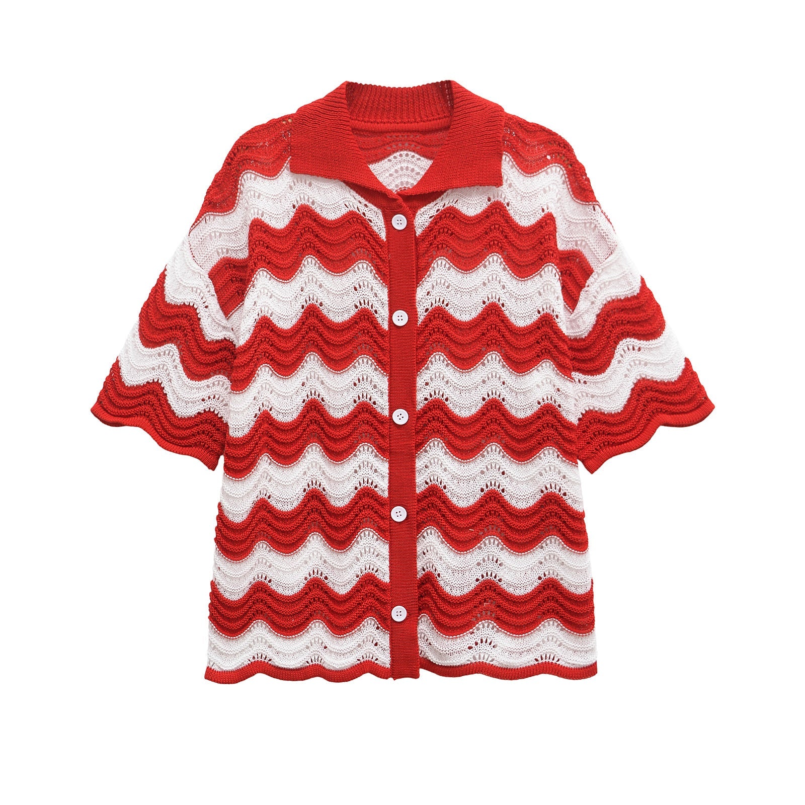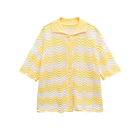Chic und Vielseitige Wellenmuster Strickjacke