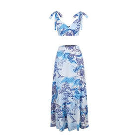 Dieses Damen Zweiteilige Set von berg-feldt vereint Stil und Komfort. Ärmelloses, cropped Oberteil mit Bindebändern; langer, fließender Rock mit einzigartigem Druck.